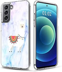 Amazon Com Case For Samsung S22 Samsung Galaxy S22 Case Clear Hard Pc And Soft Silicone Dual Layer Shockproof Protective Cover For Samsung S22 Cute Llama Alpaca Marble Cell Phones Accessories